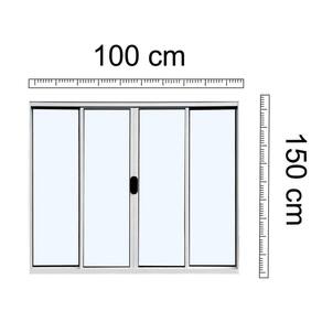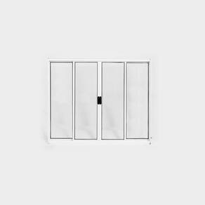 Vitro 4 folhas sem grade Linha Plus, acabamento alumínio brilhante ou pintura branco, dois vidros fixos e dois vidros móveis, vidro incolor de 3 mm, fecho central com porta cadeado, borrachas EPDM, borrachas e escovas de vedação para maior conforto reduzindo a vibração, atende Norma ABNT 10821.