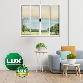 Vitro 4 folhas sem grade Linha Plus,acabamento alumínio brilhante ou pintura branca, dois vidros fixos e dois vidros móveis, vidro incolor de 3 mm, fecho central com porta cadeado, borrachas EPDM, borrachas e escovas de vedação para maior conforto reduzindo a vibração, atende Norma ABNT 10821. A linha Plus é recomendada para edificações com até dois pavimentos máximo 16 metros de altura.indicado para sala, cozinhas, etc. Acompanha Batente: Não Acompanha Guarnição: Não Acompanha Manual de Instalação: Sim Altura: 120 cm Ambiente Principal: Sala de Estar Certificado: ABNT 10.821 Controle Remoto: Não Cor: Branco Cor do Produto: Branco Cor do Produto: Branco Cor do Vidro: Incolor Elétrica: Não Escala de Brilho: Brilhante Espessura: 6 cm Espessura do Vidro: 3 mm Isolamento Acústico: Não Itens Inclusos: 1 Janela Lado de abertura: Central Largura: 120 cm Linha ou Coleção: Plus Manual de Montagem e Instalação: https://cdn2.madeiramadeira.com.br/atributo/lux-esquadrias/999908-luxvenezianasevitros.pdf Necessita Montagem: Não Número de Folhas: 04 Origem do Produto: Nacional Peso: 15 kg Possui Grade: Não Recomendações de Uso, Manutenção e Limpeza: Água e Sabão Neutro, Pano macio Tamanho: Tipo de Janela: Correr Tipo de Parede: Alvenaria Tipo de Vidro: Liso Incolor Vidro incluso: Sim Vidro Temperado: Não