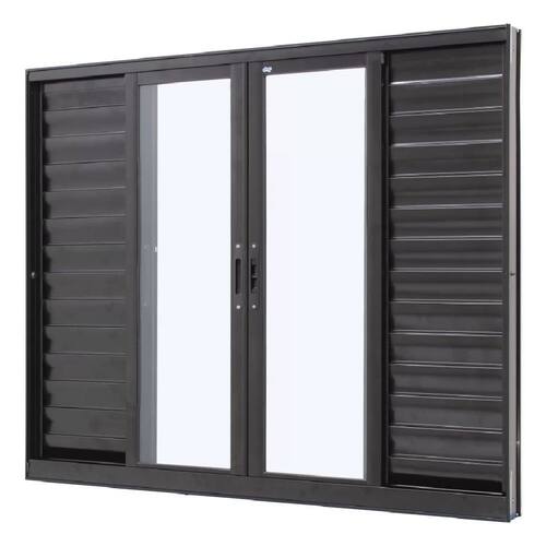 Descrição: A janela veneziana V6 da linha Caribe Max possui quatro folhas venezianas, sendo duas fixas e duas móveis, e mais duas folhas móveis de vidro, esse modelo é feito para locais que não precisam de luz natural o tempo todo, mas que também não devem ficar permanentemente no escuro. É uma boa sugestão para dormitórios. As folhas móveis permitem liberdade na hora de controlar a entrada de luz e ventilação.
