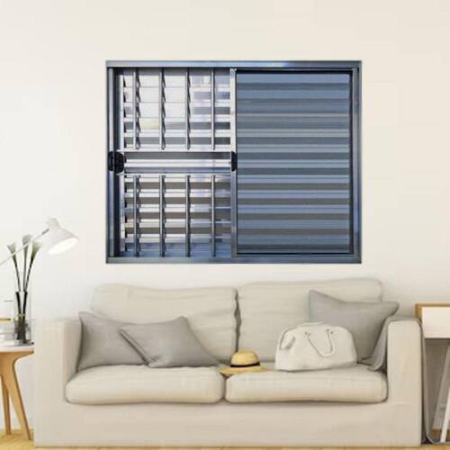 Janela de Alumínio Brilhante Veneziana 3 Folhas Linha Modular Com Grade - Bergame