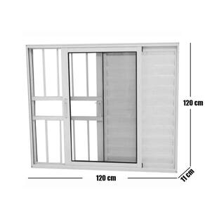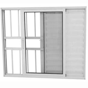 Janela de Alumínio Branco Veneziana 3 Folhas Com Grade Linha 25 Esquadrias Bergame - Bergame