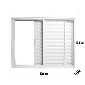 Janela Veneziana de Alumínio 3 Folhas 120 x 120cm Linha 25 Esquadrias Bergame Branco