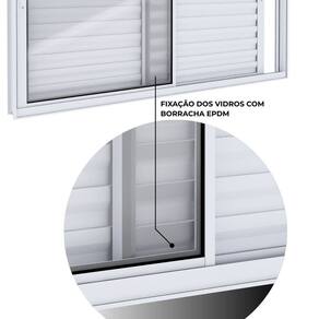 Com 3 folhas, sendo 2 móveis e 1 fixa, possui abertura lateral para o lado esquerdo, que otimiza o espaço e se adapta a diferentes ambientes. Produzida em alumínio com pintura eletrostática a pó, oferece maior durabilidade, resistência e acabamento uniforme. O modelo conta com vidro liso incolor de 0,3cm, fixado com borracha EPDM, que garante vedação eficiente e facilita a substituição quando necessário.
