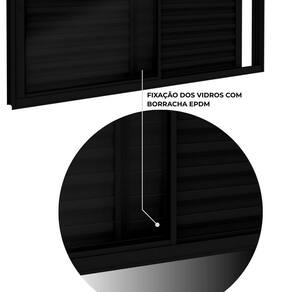 Com 3 folhas, sendo 2 móveis e 1 fixa, possui abertura lateral para o lado esquerdo, que otimiza o espaço e se adapta a diferentes ambientes. Produzida em alumínio com pintura eletrostática a pó, oferece maior durabilidade, resistência e acabamento uniforme. O modelo conta com vidro liso incolor de 0,3cm, fixado com borracha EPDM, que garante vedação eficiente e facilita a substituição quando necessário.