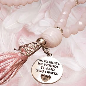sempre em sintonia com as melhores vibrações, as criações da encanto das contas são produzidas dentro de cuidadosas normas de qualidade. Desde a busca das melhores pedras até a pubicação de nossas coleções, todo o processo de confecção dos japamalas é feito pensando em encantar e atingir a satisfação plena de quem as recebe, fazendo parte dos momentos de meditação, conexão, elevação e autocuidado. Japamala 108 contas em cristal facetado rosa e pingente ho'oponopono