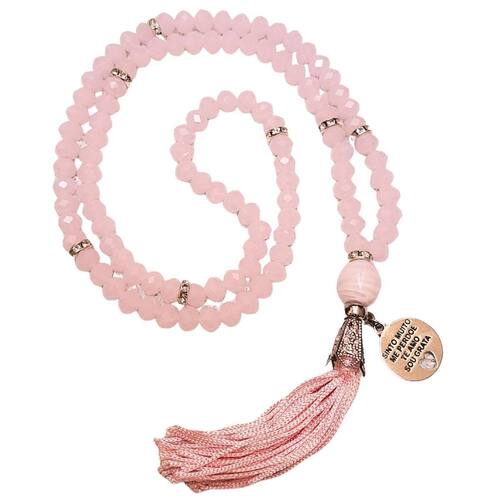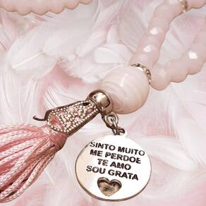 sempre em sintonia com as melhores vibrações, as criações da encanto das contas são produzidas dentro de cuidadosas normas de qualidade. Desde a busca das melhores pedras até a pubicação de nossas coleções, todo o processo de confecção dos japamalas é feito pensando em encantar e atingir a satisfação plena de quem as recebe, fazendo parte dos momentos de meditação, conexão, elevação e autocuidado. Japamala 108 contas em cristal facetado rosa e pingente ho'oponopono