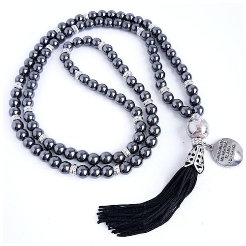 mas, também vem se popularizando no ocidente, e muito aqui pelo brasil e américa latina. É uma ferramenta que auxilia na concentração para a prática meditativa, repetição e contagem de mantras e orações, mantendo a mente focada e livre de pensamentos negativos. Controle do rítmo respiratório e cardíaco, e pressão arterial. As energias e vibrações positivas geradas na prática vão se imantando ao colar de contas a cada repetição, tornando-as cada vez mais poderosas. Poderoso aliado na busca do auto conhecimento, e colocando você mais alinhado com sua espiritualidade. Devido a sua beleza e valor estético cada vez mais vem sendo utilizado também como amuleto de proteção ou acessório no pescoço, enrolado no pulso, pendurado no retrovisor do carro. Confeccionados de forma personalizada com pedras e cristais carregados de energia e vibrações benéficos, além de muita beleza. As pedras e/ou sementes são naturais