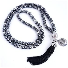 Seja muito bem-vinda o à encanto das contas Nossos produtos são produzidos 100% artesanalmente com muito amor e boas energias : Todas as nossas peças são de excelente qualidade e acabamento, antes do envio passam por um rigoroso controle. Sobre nós a encanto das contas: Sempre em sintonia com as melhores vibrações, as criações da encanto das contas são produzidas dentro de cuidadosas normas de qualidade. Desde a busca das melhores pedras até a pubicação de nossas coleções, todo o processo de confecção dos japamalas é feito pensando em encantar e atingir a satisfação plena de quem as recebe, fazendo parte dos momentos de meditação, conexão, elevação e autocuidado. Japamala 108 contas em pedras naturais hematita e pingente ho'oponopono Especificações: Pingente: ho'oponopono Número de contas: 108 Tamanho das contas: 8mm Comprimento incluindo tassel: 54cm As pedras por meio de suas vibrações e energia trazem benefícios e proteção. Para desfrutar dos benefícios das pedras é importante tê-las sempre por perto. Sobre a pedra hematita: É a pedra do aterramento. Muito poderosa para proteção pessoal e energização espiritual. Age como um verdadeiro escudo protetor tamanha a sua força energética positiva, Repelindo e bloqueando toda negatividade. Desperta amor próprio e autoestima, coragem e determinação. Para desfrutar dos benefícios da hematita é importante tê-la sempre por perto. Uma maneira de conseguir isso, é usá-la como colar, pulseira, no bolso, ou até mesmo embaixo do travesseiro. Maneiras de usufruir dos benefícios do seu japamala: - cordão para meditação, repetição de orações e/ou mantras; - amuleto de proteção, no carro, no bolso, na bolsa, em casa ou no trabalho; - colar ou pulseira; - para limpeza energética do ambiente; - peça decorativa ornamental ; - colar de mesa. Oque é japamala Japamala é um cordão de contas, considerado sagrado. Surgiu por volta do século viii a.C. Na ndia, utilizada pelas religiões orientais, sua origem baseia-se nas religiões hinduísta e budismo. conhecido também como rosário/terço budista Mas, também vem se popularizando no ocidente, e muito aqui pelo brasil e américa latina. É uma ferramenta que auxilia na concentração para a prática meditativa, repetição e contagem de mantras e orações, mantendo a mente focada e livre de pensamentos negativos. Controle do rítmo respiratório e cardíaco, e pressão arterial. As energias e vibrações positivas geradas na prática vão se imantando ao colar de contas a cada repetição, tornando-as cada vez mais poderosas. Poderoso aliado na busca do auto conhecimento, e colocando você mais alinhado com sua espiritualidade. Devido a sua beleza e valor estético cada vez mais vem sendo também como amuleto de proteção ou acessório no pescoço, enrolado no pulso, pendurado no retrovisor do carro. Confeccionados de forma personalizada com pedras e cristais carregados de energia e vibrações benéficos, além de muita beleza. As pedras e/ou sementes são naturais Sim, só trabalhamos com sementes e pedras naturais, selecionadas e de qualidade. Observações: - nossas peças são confeccionadas artesanalmente uma a uma, por este motivo pode ocorrer alterações nas texturas e tonalidades das cores. Cuidados: - não molhar e nem deixar em contato com cosmético, perfumes ou produtos químicos; - limpar com flanela e guardar em local seco; - evitar atritos e grandes impactos ou quedas; - não enroscar a peça em algum outro objeto