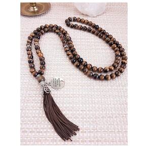 Japamala 108 contas em Pedras Naturais Olho de Tigre Japamala 108 Contas em Pedras Naturais Olho de Tigre Confeccionado Artesanalmente para aproveitar ao máximo os poderes das pedras é importante tê-las sempre por perto. Maneiras de usufruir dos benefícios do Japamala: - cordão para meditação, repetição de orações e/ou mantras;- amuleto de proteção, no carro, no bolso, na bolsa, em casa ou no trabalho;- Colar ou pulseira;- Peça decorativa ornamental (para limpeza do ambiente) Pingente: Medalha Ho'oponopono (Sinto muito, Me Perdoe, Te amo, Sou Grata) e Tassel de SedaNúmero de contas: 108Tamanho das contas: 8,00 mmComprimento incluindo Tassel: 50cm aprox. Sobre a pedra OLHO DE TIGRE, usada neste Japamala: - Traz tranquilidade nos momentos de stress.- Também usada na cura.- Unifica os aspectos da vida.- Poderosa quando se trata de proteção, afastando energias ruins, equilibrando os pensamentos, facilitando e clareando a intuição. Chakras: sacral - Svadhishana; Plexo Solar e Umbilical - Manipura; Raiz -Muladhara. Signos: Leão e Capricórnio. Oque é Japamala: Japamala é um cordão de contas, considerado Sagrado.Surgiu por volta do século VIII a.C. Na ndia, utilizada pelas religiões orientais, sua origem baseia-se nas religiões Hinduísta e Budismo. (conhecido também como Rosário/Terço Budista)Mas, também vem se popularizando no ocidente, e muito aqui pelo Brasil e América Latina. É uma ferramenta que auxilia na concentração para a prática meditativa, repetição e contagem de mantras e orações, mantendo a mente focada e livre de pensamentos negativos.Controle do rítmo respiratório e cardíaco, e pressão arterial.As energias e vibrações positivas geradas na prática vão se imantando ao colar de contas a cada repetição, tornando-as cada vez mais poderosas. Poderoso aliado na busca do auto conhecimento, e colocando você mais alinhado com sua espiritualidade. Devido a sua beleza e valor estético cada vez mais vem sendo usado também como amuleto de proteção ou acessório no pescoço, enrolado no pulso, pendurado no retrovisor do carro. Confeccionados de forma personalizada com pedras e cristais carregados de energia e vibrações benéficos, além de muita beleza. Perguntas Frequentes: As pedras e/ou sementes são naturais Sim, só trabalhamos com sementes e pedras naturais, selecionadas e de qualidade. Prazo para postagem Até 24 horas depois da confirmação do Pedido Observações: - Nossas peças são confeccionadas artesanalmente uma a uma, por este motivo pode ocorrer alterações nas texturas e tonalidades das cores, deste modo não consideramos defeito de fabricação. Cuidados: - Não molhar e nem deixar em contato com cosmético, perfumes ou produtos químicos; - Limpar com flanela e guardar em local seco; - Evitar atritos e grandes impactos ou quedas; - Não enroscar a peça em algum outro objeto