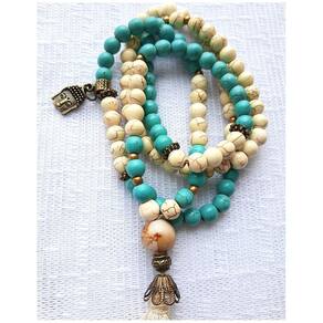 Japamala 108 contas howlita turquesa e creme japamala 108 contas em howlita nas cores turquesa e creme