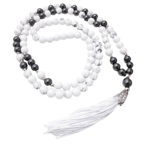 Japamala 108 contas pedras naturais howlita branca, hematita
