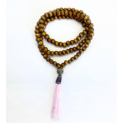 Japamala Budista 108 Contas Madeira Cristal Pompom Rosa 8MM
