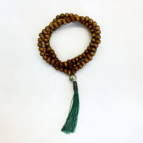 Japamala Budista 108 Contas Madeira Cristal Pompom Verde 8MM