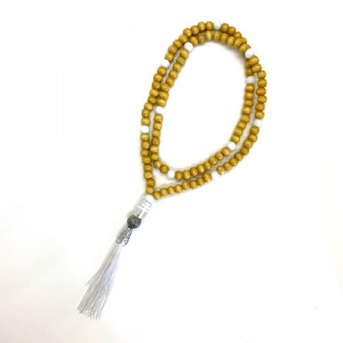 Japamala Oxala 108 Contas em Madeira Clara Pompom Branco 8MM