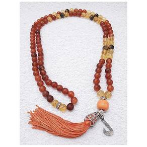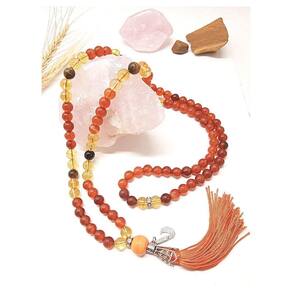Japamala 108 contas em pedras naturais agata de fogo, citrino e olho de tigre