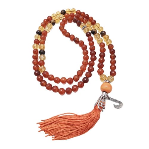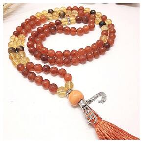 Japamala 108 contas em pedras naturais agata de fogo, citrino e olho de tigre