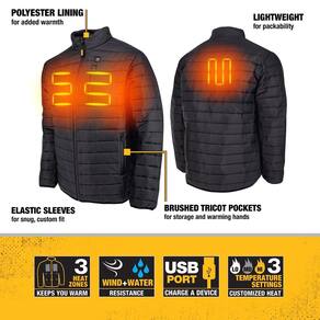 DEWALT Jaqueta masculina leve e aquecida, Preto