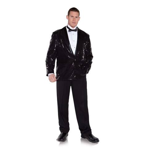 - Underwraps Costumes traz para você esta linda jaqueta preta de lantejoulas, um blazer masculino de festa estilo smoking com gola macia forrada de cetim
