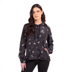 Características: Modelo: Corta vento Material: Tecido leve com estampa floral Bolsos: Frontais para praticidade Punhos: Com elástico para um ajuste confortável Capuz: Com cordão aplicado para ajuste seguro Fechamento: Frontal em zíper Detalhe: Etiqueta emborrachada na parte frontal Ajuste: Regulador na barra com elástico interno Forro: Em tela para melhor respirabilidade
