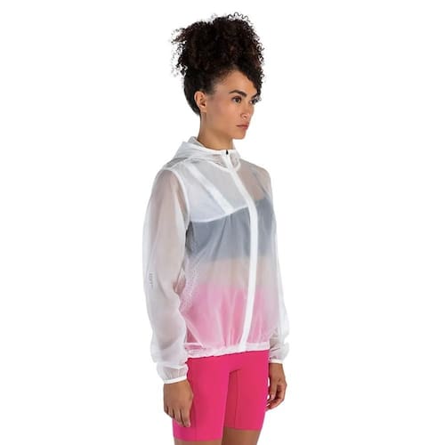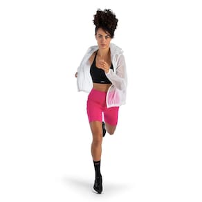 Para se proteger do vento sem abrir mão da leveza. Confeccionada em tecido de poliamida, a jaqueta possui a tecnologia de proteção ao vento, que bloqueia a passagem do vento e ajuda a manter o conforto térmico. Furos a laser em regiões estratégicas aumentam a ventilação e equilibram a temperatura do corpo. O capuz e as mangas com elástico, barra ajustável e zíper frontal com trava e acabamento zipper garage evitam atrito com a pele. Conta com bolso no ombro direito, funcional para objetos pequenos e para embalar. Logos refletivos garantem visibilidade em ambientes com pouca luz.