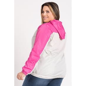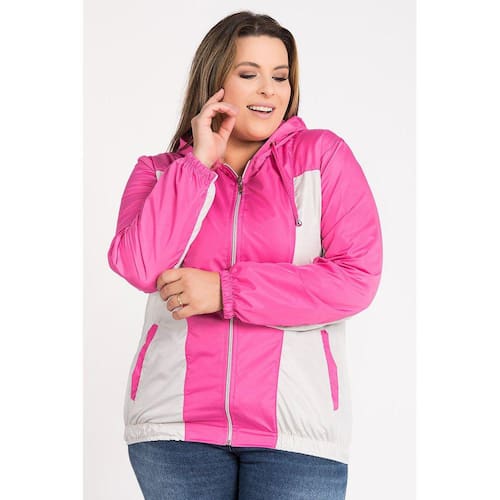 Jaqueta feminina plus size bicolor elaborada em microfibra com forro. Possui bolsos na frente, capuz com cordão e ponteiras, fechamento com zíper e elástico na barra e nos punhos. Use-a aberta ou fechada, seja nos dias mais frios sobreponto outra peça ou ainda em dias de temperastura mais amena. No trabalho, à passeio ou em casa, esteja bem vestida e sinta-se confortável!