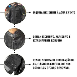 Enquanto outras jaquetas genéricas superaquecem ou comprometem o visual, a Explorer Adv usa bolsos estratégicos (quatro externos frontais, três internos e um nas costas) para praticidade e tiras refletivas para segurança noturna, essencial para quem busca qualidade e funcionalidade.
