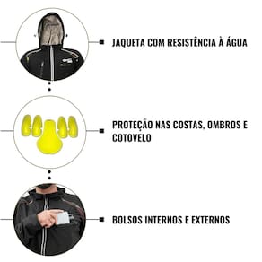 Enfrente qualquer clima sabendo que sua jaqueta não só protege contra impactos nas costas, ombros e cotovelos, mas também mantém seu corpo fresco graças ao sistema de circulação de ar, garantindo conforto absoluto mesmo em longas jornadas.