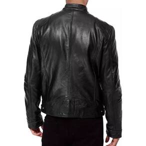 Jaqueta impermeável de couro de motocicleta para homens - Preto - M