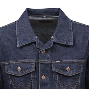 Uma Jaqueta Jeans masculina da marca Wrangler, esta fabricada em tecido denim de alta qualidade na cor Azul Escuro, uma peça realmente clássica e atemporal, ela possui mangas longas para os dias de frio no campo ou na cidade, dois bolsos no peito com fechamento em botões, nas laterais e no interior para colocar pequenos objetos demonstrando a versalidade da peça, regulagem na barra e fechamento por botões de metal.