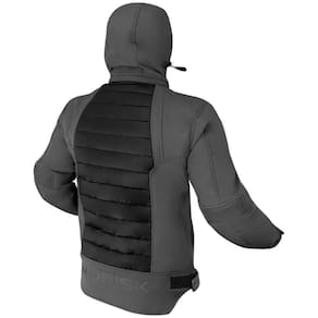 No acabamento, o destaque vai para o tecido Softshell de alta qualidade com inserções de Puffer no tórax e nas costas, entregando uma excelente sensação térmica mesmo nos dias de frio. A membrana impermeável oferece resistência à água de até 15000 mm de coluna de água, garantindo proteção eficiente nas chuvas mais comuns do ambiente urbano.