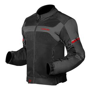 Tecido externo em poliéster 600D de alta resistência Painéis em Mesh para ventilação máxima Protetores de ombro e cotovelo CE Nível 1 removíveis Compartimento para protetor de coluna (protetor EVA incluso) Forro impermeável e forro térmico removíveis Detalhes refletivos de alta visibilidade Múltiplos bolsos (internos e externos, alguns impermeáveis) Ajustes de cintura, punhos e braços Três alças para fixação na calça