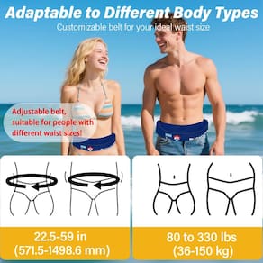 - ?Flutuabilidade suficiente?: Flutuabilidade 110N, pode suportar adultos com peso inferior a 130 kg e equipado com um cinto ajustável, projetado para se ajustar às formas e tamanhos do corpo da maioria das pessoas, adequado para a maioria dos adultos e adolescentes (circunferência da cintura mais baixa adequada: 57 cm - circunferência máxima da cintura adequada: 150 cm)