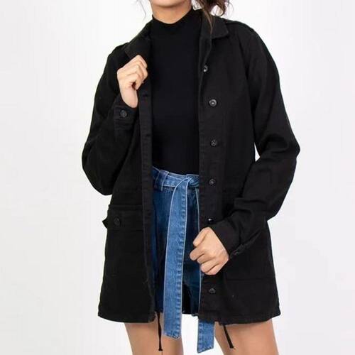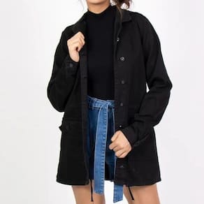 M – Ombros: 39,5 cm. Busto: 104 cm. Manga: 66 cm. Comprimento: 74 cm.