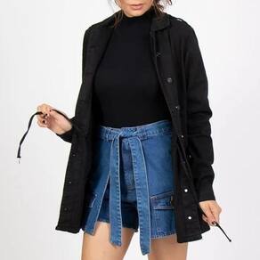 Modelagem ampla com cordão para ajuste da cintura. Possui bolsos funcionais.