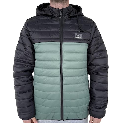 Jaqueta QuikSilver Puffer feita em modelagem regular, com capuz removível e abertura em zíper, puxador personalizado da marca, silk refletivo na aba interna abaixo do zíper, possui recorte contrastante frente e costas, bolsos laterais com fechamento em zíper e bolsos internos, etiquetas emborrachadas da merca aplicadas no peito e na manga direita.