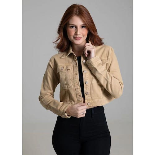 Fechamento com botões metálico Dois bolsos frontais funcionais Barra acabamento simples Modelagem: Jaqueta Tecido: Sarja Tipo de lavagem: Color Cores: Caqui, Bege, Jeans, PretaCor: Bege