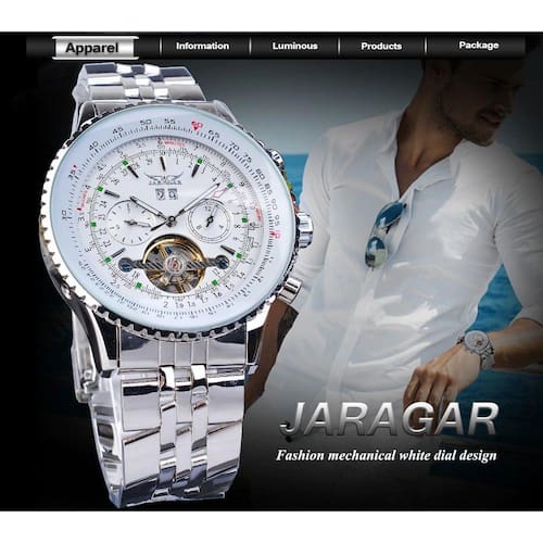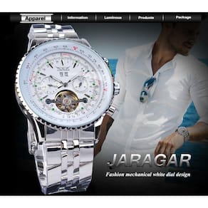 Nome da marca: T-WINNERProfundidade de resistência à água: Não à prova d' águaFecho: Fecho dobrável com segurançaEstilo: Luxury/ruMovimento: Vento automáticoComprimento da pulseira: 23Material do estojo: STAINLESS STEELCaracterística: Data automáticaCaracterística: Calendário completoNúmero do modelo: JARAGAR JA034Formato do Estojo: ROUNDLargura de banda: 22mmEspessura do estojo: 15mmTipo de material do visor: HardlexMaterial das Caixas e Estojos: PapelTipo de Item: Relógios de pulso mecânicoDiâmetro do visor: 50mmTipo de matéria da pulseira: STAINLESS STEEL