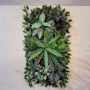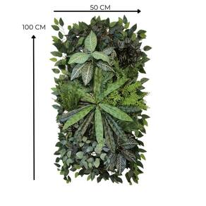 - dimensões da placa: 100x50 cm. - folhagens artificiais de alta qualidade e aparência natural. - placas modulares que permitem a personalização do seu espaço. - acompanha kit de parafusos e buchas para instalação rápida.