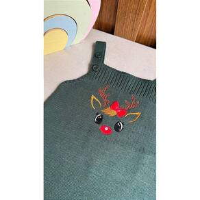 Jardineira Romper Natal Rena Com Laço Verde - G - Verde