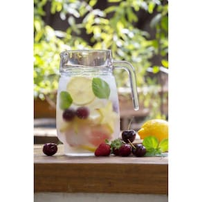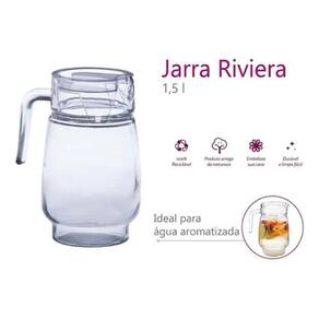 A jarra Riviera traz um sofisticado design em sua composição, ela é feita de um vidro temperado muito resistente e com tampa acrílica que ajuda a manter o suco, água ou drink sem alterar o sabor quando levado a geladeira.