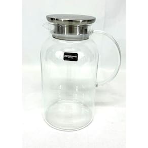 Conjunto Jarra 1,8L tampa inox + 6 copos 420ml Luxo Descrição Jarra: Capacidade 1,8L Material - Vidro Tampa em Inox com 2 saídas Altura da Jarra 19cm Peso 1,05kg 1 Unidade Descrição Copos Capacidade 420ml Material Vidro Altura do copo 10,8cm Peso copo 170g 6 Unidades do vendedor: 30 dias Marca: Não Informado