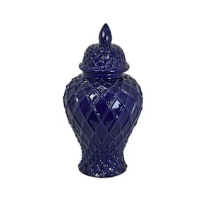Jarra de gengibre Temple com design geométrico Livie Ceramic com tampa de cúpula azul
