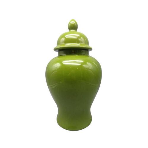 Jarra decorativa de gengibre Temple Benjara Teli de 18 polegadas, cerâmica lisa, verde brilhante