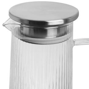 Ideal para servir ou armazenar bebidas e refrescos, as jarras são indispensáveis e proporcionam praticidade e beleza à mesa posta. A Jarra Beth tem capacidade de 1,4 Litros, produzida em vidro borossilicato com detalhe canelado e tampa em inox com vedação em silicone.