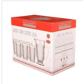 Dimensões da peça: 1 jarra: 16,5 x 13 x 21,5cm / capacidade: 1l 6 copos: 7 x 7 x 13cm / capacidade: 265ml cada
