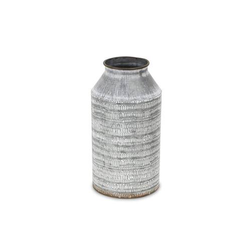 Jarra decorativa Cheung de metal galvanizado con acabado lavado en blanco, color gris. - Diseño totalmente hecho y elaborado a mano - Completamente ensamblado y listo para usar, ¡solo desempaca y exhibe! - Esta pieza cuenta con una construcción completamente metálica - Presenta un acabado blanco cepillado estampado