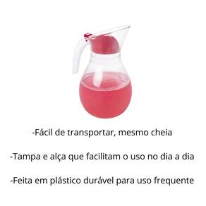 A Jarra de Plástico com Tampa e Alça 2L é prática, leve e ideal para o dia a dia. Perfeita para servir sucos, água, chás gelados ou refrescos, sua capacidade de 2 litros é ideal para famílias ou reuniões. O design funcional inclui alça ergonômica, que facilita o manuseio, e tampa que protege as bebidas de impurezas e preserva o sabor. Fabricada em plástico resistente e livre de BPA, é segura para contato com alimentos e fácil de limpar, sendo indispensável para a rotina da sua cozinha. Com cores modernas e acabamento que combina com qualquer ambiente, é a escolha ideal para quem busca durabilidade e praticidade com ótimo custo-benefício. Especificações: - Marca: Plasutil; - Modelo: 017880; - Capacidade: 2000ml; - Com Tampa: Sim; - Dimensões: 17,5 x 14,5 x 26 cm; - Diâmetro: 11 cm; - Peso: 241g; - Material: Plástico; - Com alça: Sim; - Aplicação: Indicada para Água, suco e refrigerante; - Recomendações: Guardar totalmente seca para evitar acúmulo de umidade ou mofo na tampa; - : 3 meses 90 dias . Conteúdo da embalagem: -01 Jarra de Plastico com Tampa e Alca 2L. Marca: Não Informado Ean: 7899808830161