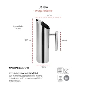 4 Jarras Capacidade: 1350 ml Medidas: 29,5 x 14 cm Material: Aço inoxidavel 304 Peso: 480g Marca: CASACHA