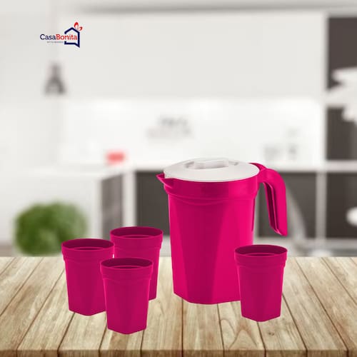 Jarra De Suco E Água Com 4 Copos De Plastico - Plasmont