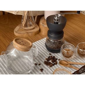 A jarra em vidro borossilicato possui o formato anatômico que ajuda a conservar a temperatura do café por mais tempo e seu vidro de borossilicato é resistente a choque térmicos o que permite vida útil do produto. Com tampa de cortiça com um design minimalista e elegante para sua cozinha.